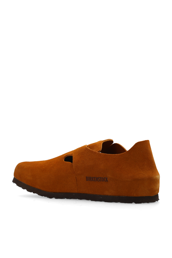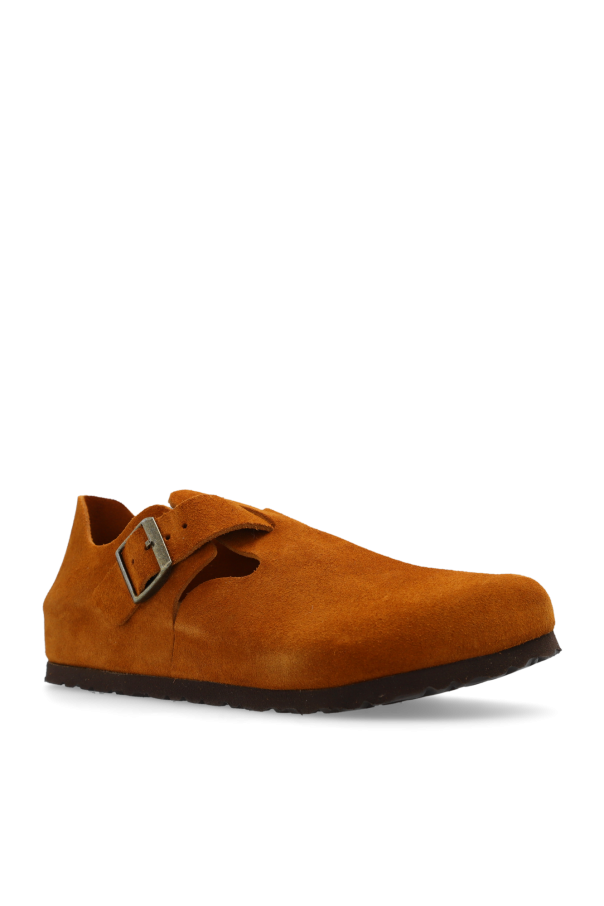 Brown ‘London BS’ suede shoes from Birkenstock. Made of suede, this pair features an adjustable buckle strap, embossed logo, anatomically shaped cork-latex footbed and a brown EVA outsole.