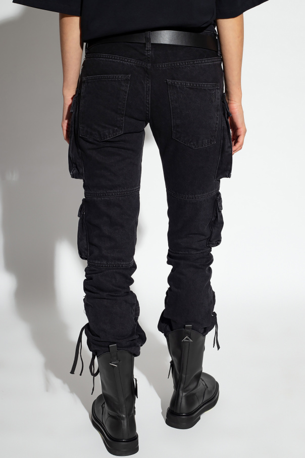 Black ‘Essie’ cargo jeans from The Attico. Falling with tapered legs, this pair features a zip fly with a button, multiple pockets and an embroidered logo on the back.