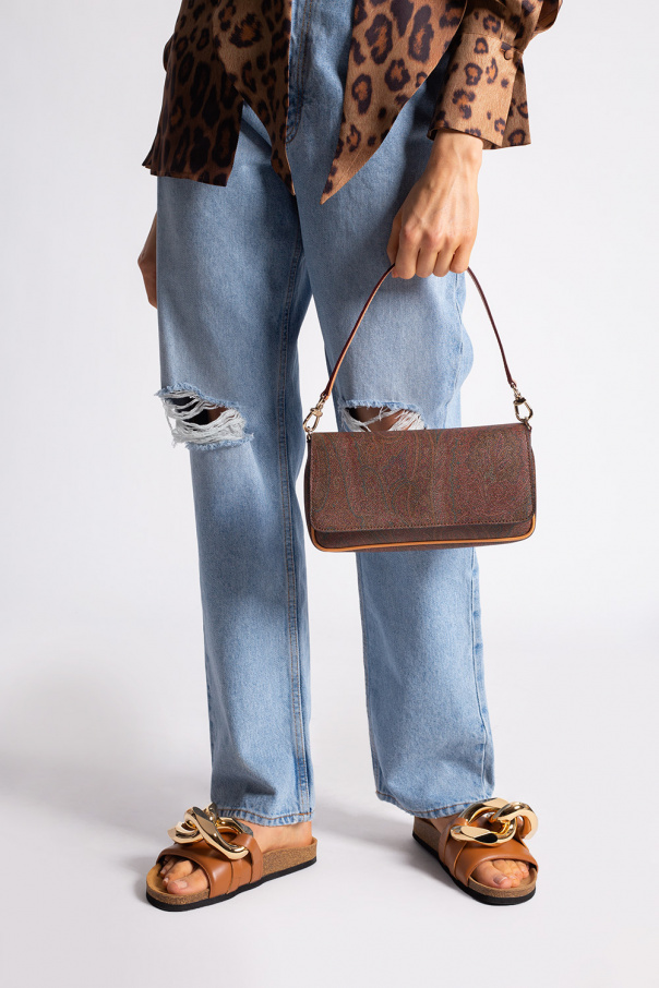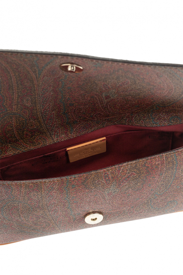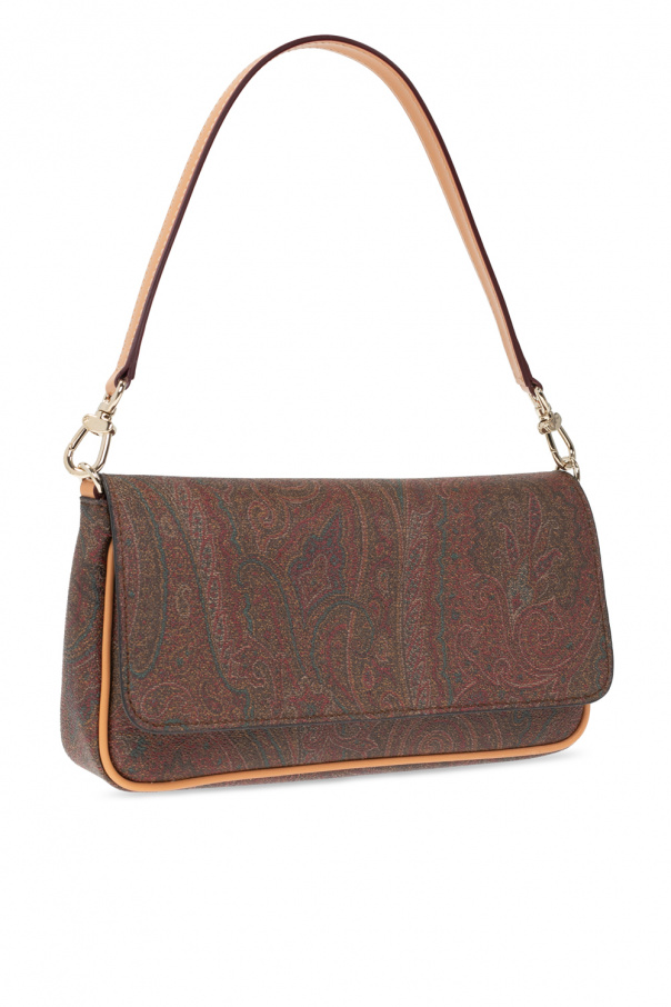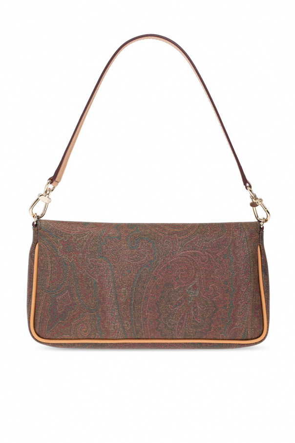 Brown ‘Sottobraccio’ hand bag from Etro. Made of textured fabric, this design features a zip fastening, printed pattern, detachable yellow shoulder strap, gold-tone metal hardware and one internal compartment with one slip pocket.