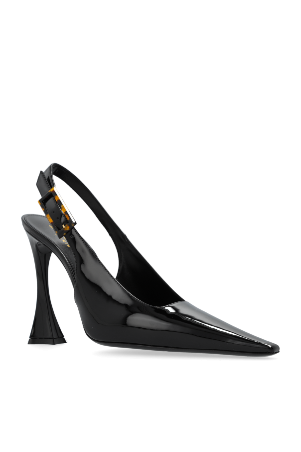 Introducing the Dune High Heels by Saint Laurent – a quintessence of sophistication and modern allure. Crafted from 100% premium leather, these black patent shoes are the epitome of elegance. The sleek, elongated toe and the innovative inverted 'L' shaped heel present a silhouette that is both striking and statuesquely elegant. The ornamental buckle around the ankle, adorned with gold accents, not only serves as a chic closure but also adds a touch of opulence. This detail, combined with the glossy finish of the patent leather, sets the Dune heels apart as a symbol of luxury and avant-garde style. Its universal black hue enhances versatility, making these heels a perfect match for various outfits and occasions. Whether it's a night out, a formal event, or a celebratory occasion, the Dune heels promise to elevate any ensemble. Photographs of the shoes, both standalone and on a model, showcase how they gracefully accentuate the length of the legs, adding an element of elegance to the overall silhouette. Why Purchase the Dune High Heels? Unmatched elegance and sophistication in design. Made from 100% high-quality leather for durability and comfort. Features a unique, inverted 'L' shaped heel and an ornamental buckle with gold accents. Versatile black hue that complements any outfit. Designed by the renowned Saint Laurent, ensuring exclusivity and high fashion appeal.