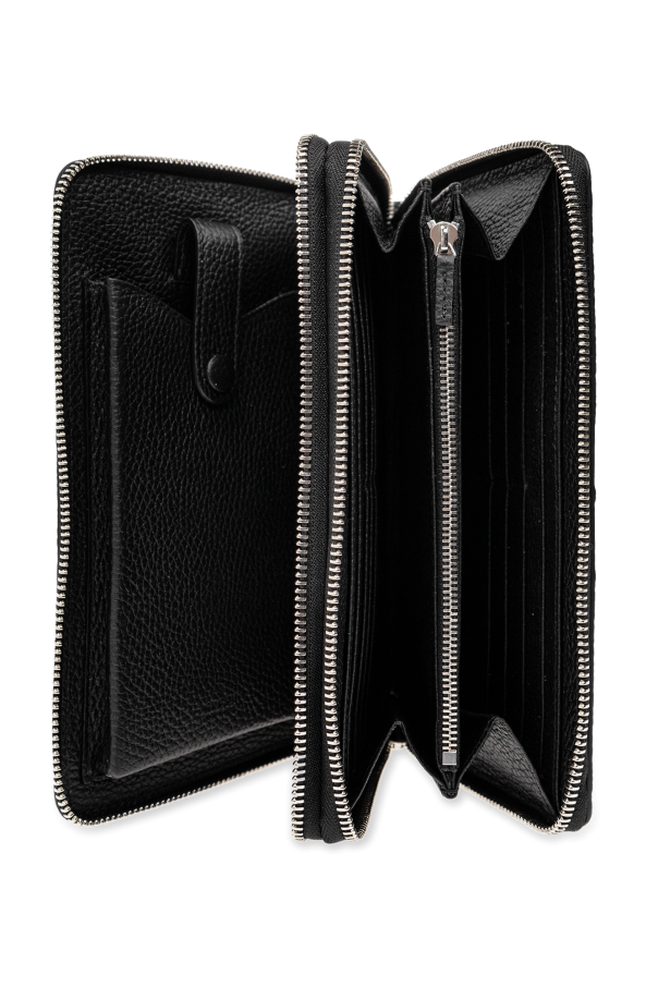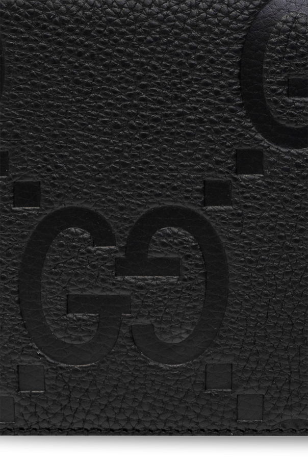 Black document case from Gucci. Made of leather with the iconic Jumbo GG pattern, this design features two separate internal compartments with zip-around fastening and silver-tone metal hardware. It has a snap-fastened coin pocket, two bill compartments, one zip pocket, five slip pockets and multiple card slots inside.