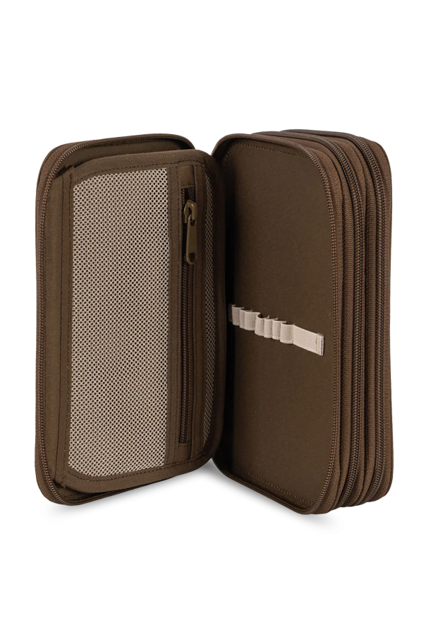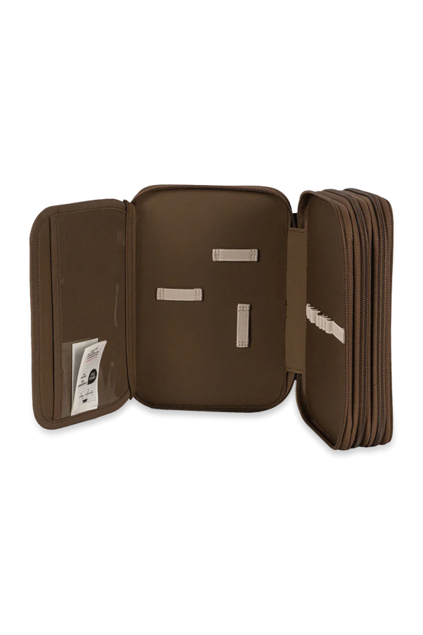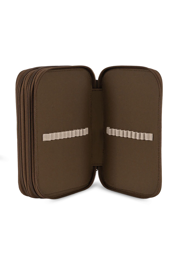 Introducing the Exclusive Embroidered Pencil Case from the renowned Danish brand, Konges Sløjd. Crafted from luxurious brown material, this pencil case exudes an air of sophistication and timeless elegance. The front of the pencil case is adorned with a meticulously embroidered lemon motif, accompanied by the charming phrases "Sweet and Sour" and "CIAO LIMONE". A small designer logo tag subtly embellishes the lower left corner, adding a touch of understated elegance. Designed with practicality in mind, the rectangular pencil case features rounded corners and a secure zip-around closure. Inside, it boasts multiple compartments and elastic straps, providing ample space for organizing school supplies. An additional mesh pocket with a zipper offers secure storage for smaller items. Why Choose This Product? Elegant design with exclusive embroidered details Spacious interior with multiple compartments Durable construction with a secure zip-around closure Made by the esteemed Danish brand, Konges Sløjd Perfect blend of style and functionality for young scholars