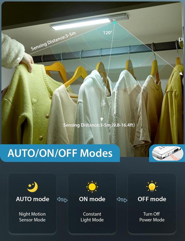 датчик движения】Светодиодное освещение кухни под шкафом имеет 3 режима работы: