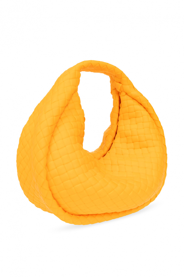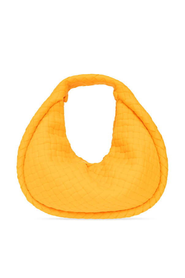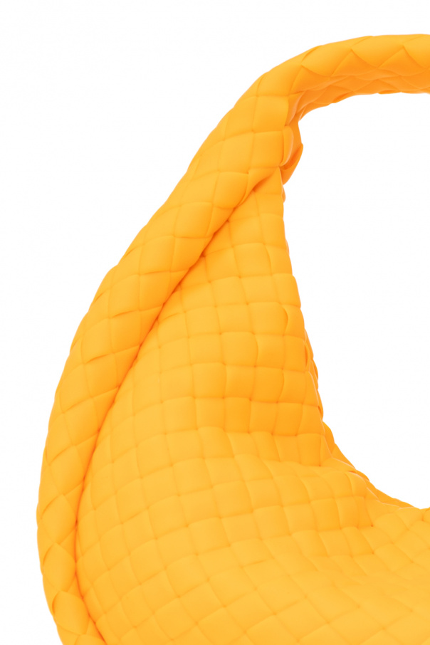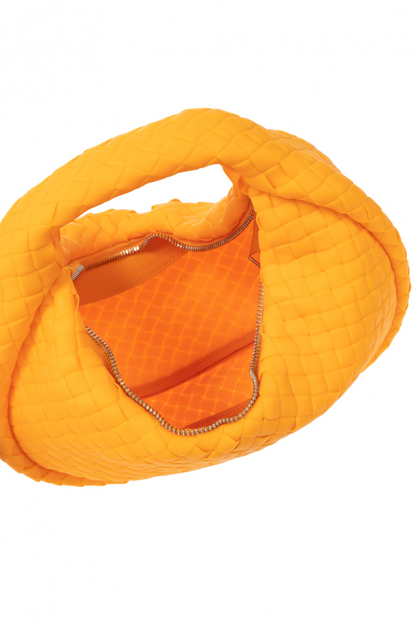 Orange ‘Jodie Mini’ hobo handbag from Bottega Veneta. Made of lamb leather, this design fastens via a zip and showcases the brand's signature ‘Intrecciato’ weave, a short handle, silver-tone metal hardware and one internal compartment.