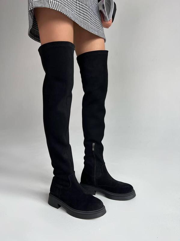 Ботфорты деми черного цвета из натуральной замши со стрейчем по всей длине.