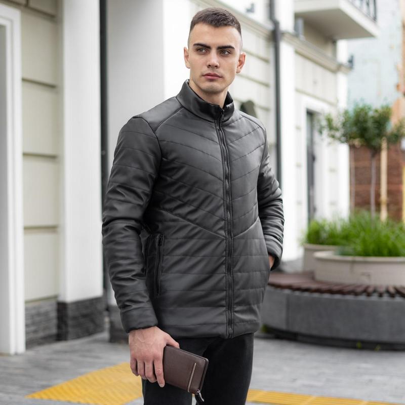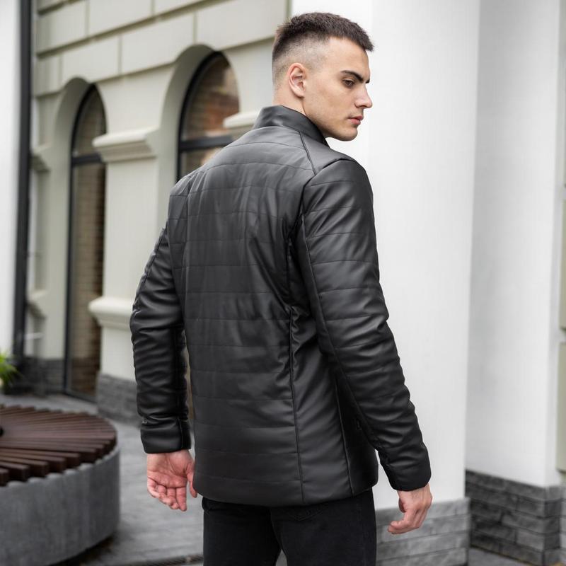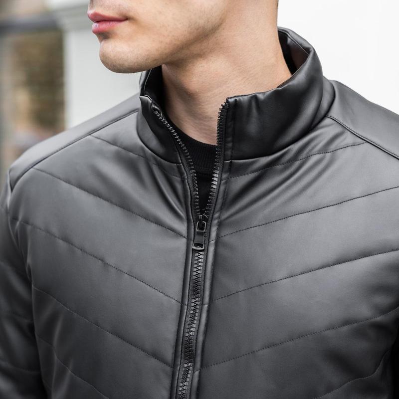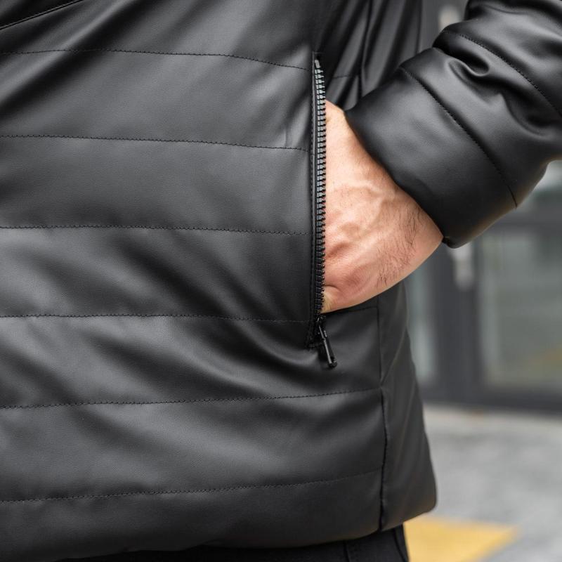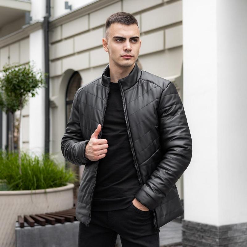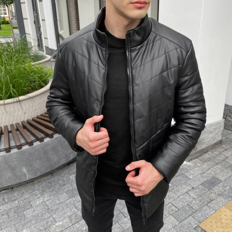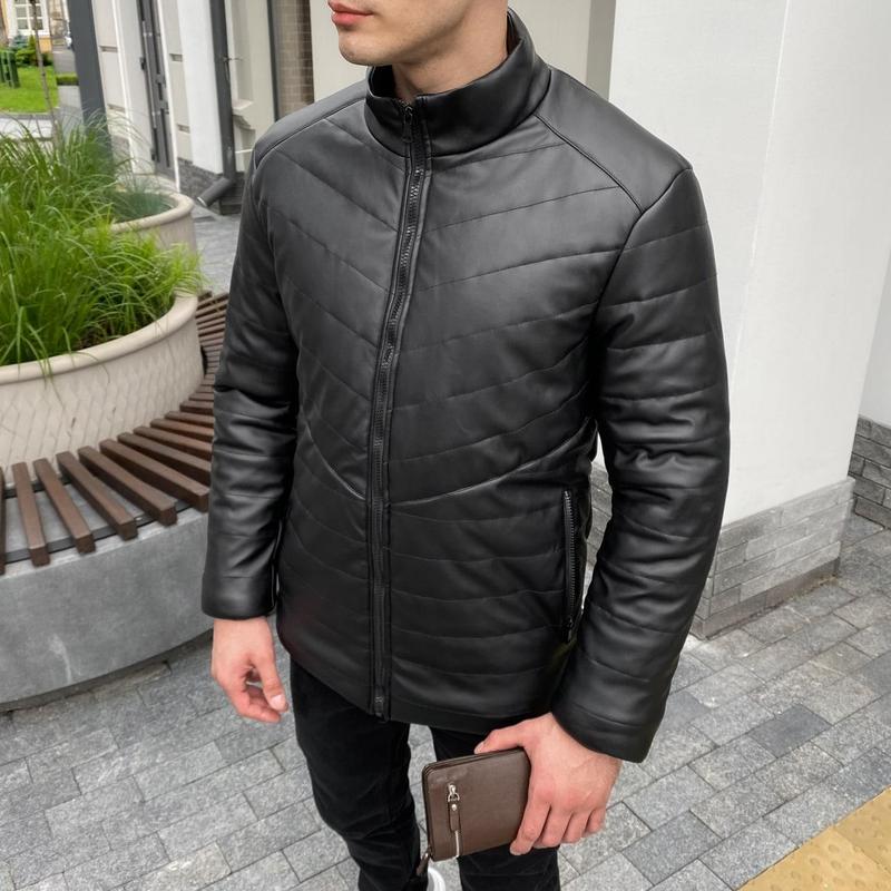 Куртка мужская Pobedov матовая теплая из эко кожи черного цвета, ОРИГИНАЛ