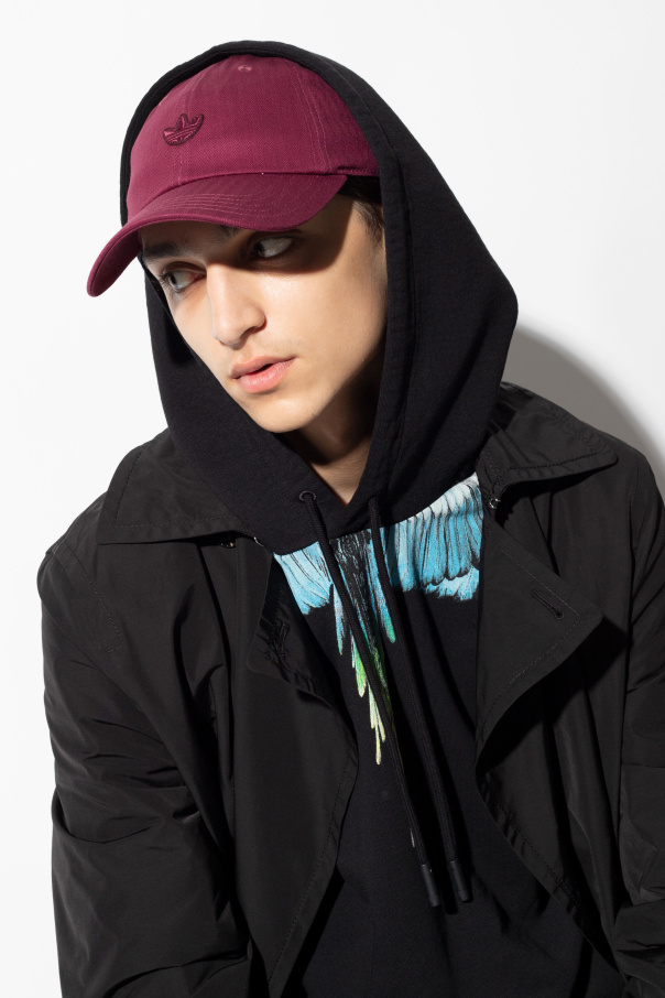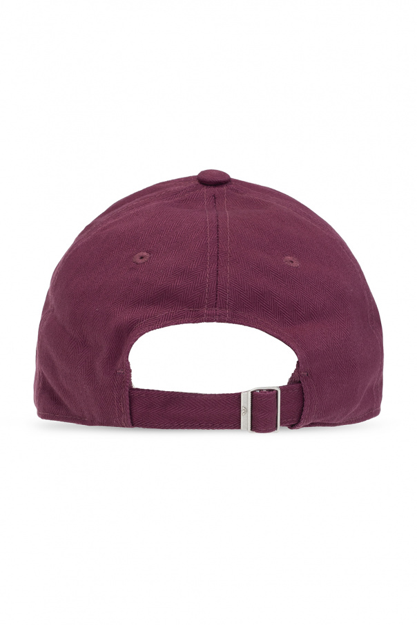 Maroon baseball cap from ADIDAS Originals. Crafted from cotton, this item showcases a logo patch and an adjustable buckle strap at the back.