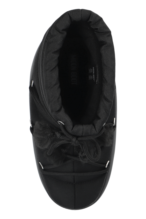 Introducing the exquisite MB EVX Light Nylon snow boots by Moon Boot, a hallmark of elegance from their exclusive collection. These black snow boots epitomize a harmonious blend of fashion and functionality, designed for those who appreciate both style and practicality. Boasting a classic rounded shape with a high shaft, these boots ensure protection against the snow, while the bright-colored, sturdy rubber sole offers remarkable traction. The exterior is crafted from premium nylon, ensuring water resistance and durability, while the interior is lined with gentle insulation to shield against the cold. The boots feature front lacing for an impeccable fit and proudly display the distinctive "MOON BOOT" logo on the side. The shaft is adorned with faux fur elements, adding a touch of sophistication and additional warmth. Why Choose This Product? Exclusive design by the renowned Giancarlo Zanatta. Water-resistant nylon exterior ensures durability. Gentle insulation for warmth in frigid conditions. Faux fur embellishments for added style and coziness. Iconic Moon Boot logo for a classic touch.
