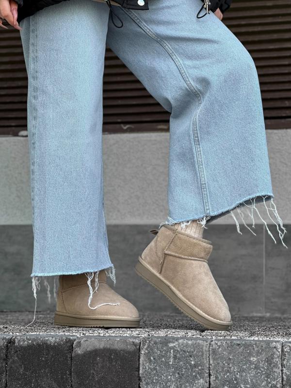 Трендові бежеві жіночі зимові уггі короткі,пісочні,замшеві,натуральна замша з хутром на зиму