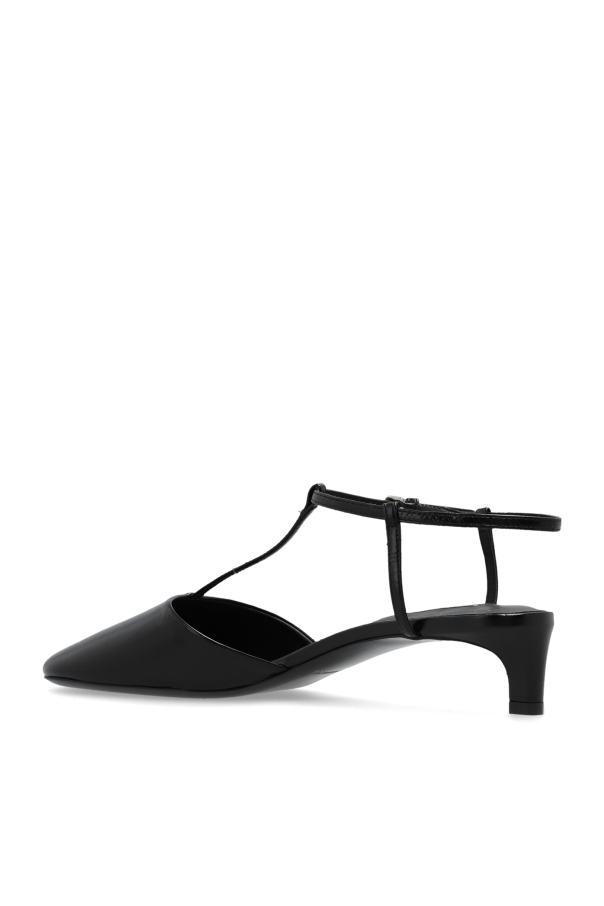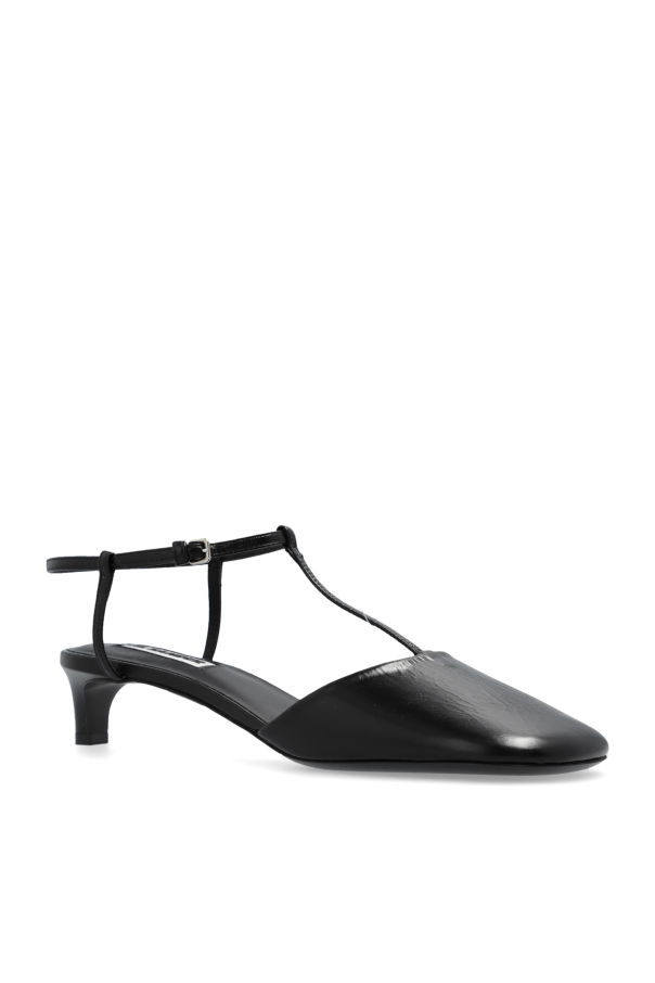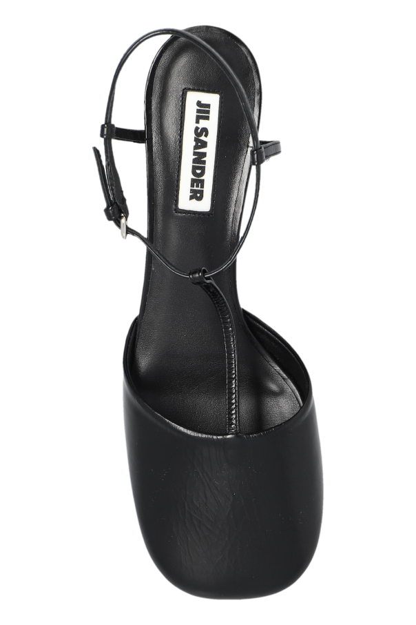 Introducing the epitome of refined elegance and sophistication - the JIL SANDER Heeled Shoes. Crafted with impeccable precision, these shoes are a testament to the timeless allure of black leather. The exterior, interior, and sole are all made from the finest leather, ensuring durability and comfort. The sleek black hue is complemented by a subtle cracked effect, adding a touch of edgy sophistication to the overall design. The shoes boast a pointed front, adorned with thin straps that create a geometric pattern across the foot, culminating in an adjustable buckled ankle strap for a custom fit. The block heel offers a moderate height, perfectly balancing elegance with practicality for extended wear. The JIL SANDer inscription on the inner sole is a mark of luxury and designer craftsmanship. Whether paired with trousers and a sweater or a more formal ensemble, these heeled shoes are versatile enough to elevate any outfit. The additional images showcase the shoes from various perspectives, highlighting the detailed craftsmanship and how they complement different styles. Why Purchase These Heeled Shoes? Designer Craftsmanship: A creation by the renowned JIL SANDER, synonymous with luxury and quality. Quality Materials: Made entirely of leather, offering durability and comfort. Unique Design: The geometric pattern and subtle cracked effect set these shoes apart. Versatility: Perfect for both casual and formal wear, enhancing any wardrobe.