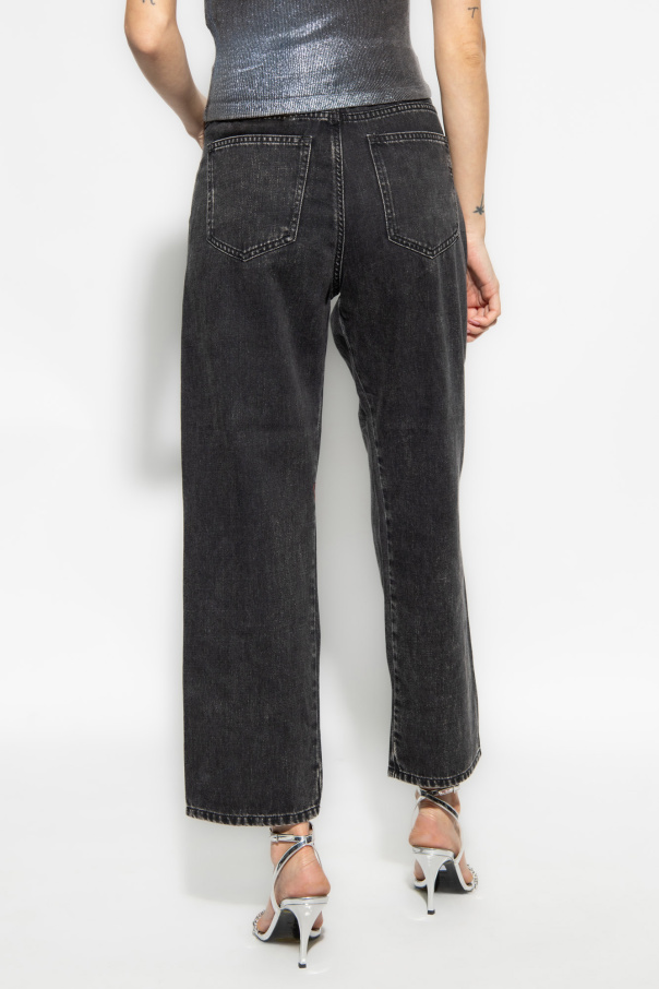 Black ‘2016 D-AIR L.32’ boyfriend jeans from Diesel. Made from fabric with a washed effect, this pair features a button and zip fastening, logo patches and five slip pockets.