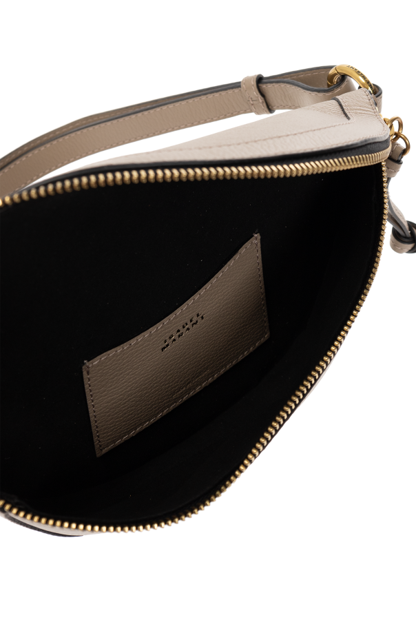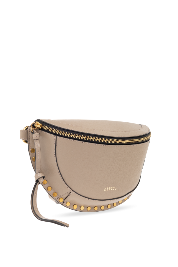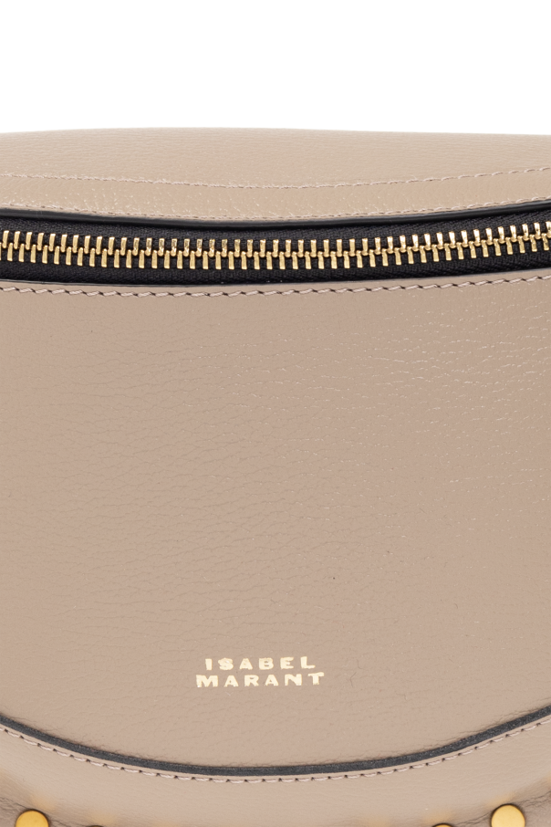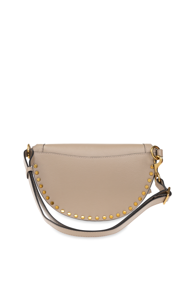Greyish beige ‘Skano’ shoulder bag from Isabel Marant. Made of leather and decorated with studs, this design fastens wit ha zip and showcases the brand's logo, one back slip pocket, adjustable shoulder strap, antiqued gold-tone metal hardware and one internal compartment with a card slot.