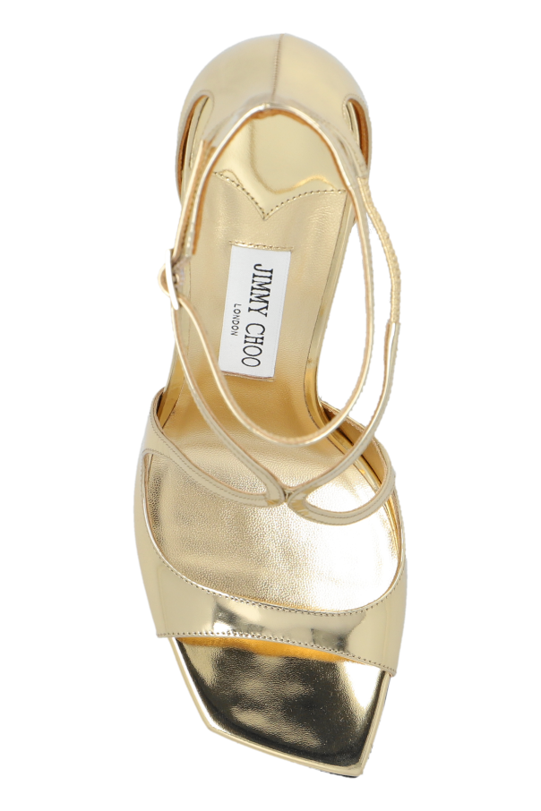Introducing the Azia high-heeled sandals by the esteemed Jimmy Choo, a masterpiece that embodies the quintessence of elegance and luxury. Crafted from the finest 100% leather, these sandals are a testament to the brand's commitment to quality and style. The dominant gold color exudes a rich, opulent vibe, making the Azia a perfect complement to exclusive fashion collections. With their slender straps artfully arranged in a delicate yet complex pattern across the foot, these sandals epitomize sophistication. The slim, high heel gracefully elongates the legs, presenting a silhouette of unparalleled elegance. The open toe design adds a touch of allure, ideal for the warmer seasons' chic gatherings. A secure buckle-fastened ankle strap ensures a customizable fit, enhancing comfort without compromising on the aesthetic appeal. The metallic finish lends a luxurious character to the ensemble, while the branded insoles signify the distinguished Jimmy Choo craftsmanship. Why Purchase This Product? Elegant gold color and complex strap design for a sophisticated look. High-quality 100% leather construction ensures durability and luxury. High heel design for an elongated, graceful leg silhouette. Adjustable ankle strap provides stability and a tailored fit. Metallic finish adds a touch of luxury, making it perfect for special occasions.
