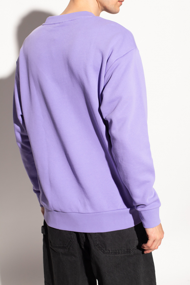 Purple crewneck sweatshirt from ADIDAS Originals. Made of cotton, this garment is enriched by ribbed trims and a printed logo pattern in white.