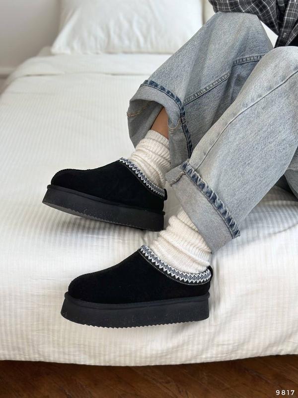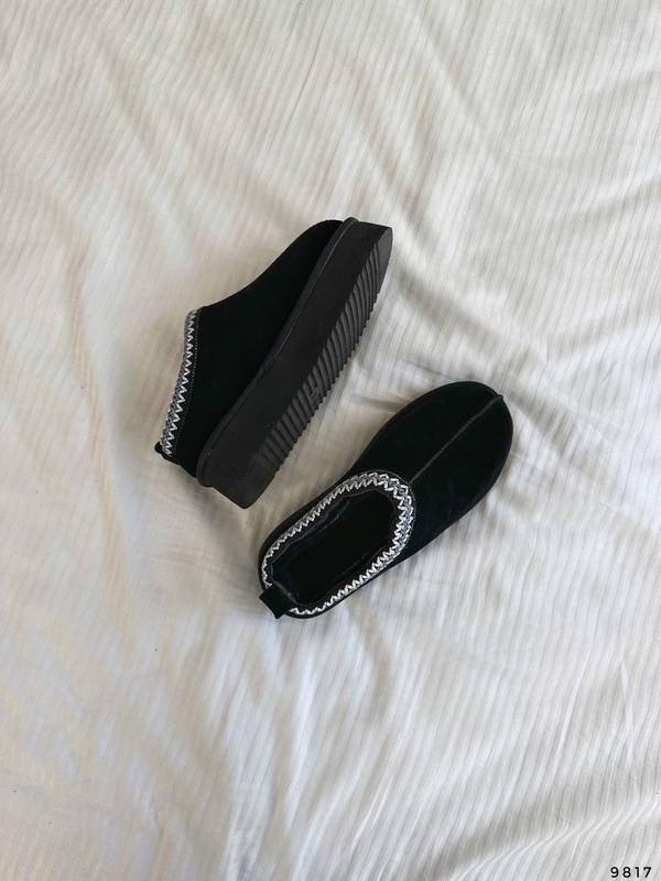 Высота от пятки: 5 смЧерные низкие угги из натуральной замши. По верху украшены вышивкой. Середина и потолка - натуральный мех. Сзади есть петелька для удобства обувания. Легкие и удобные. Подошва холодостойкая. Стильные и современные угги.