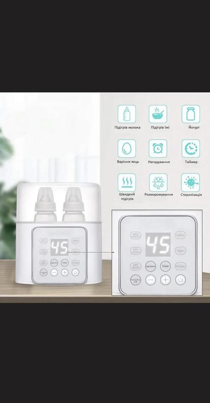 Стерилизатор для бутылочек выполняет сразу несколько функций: это не только подогреватель для молока, но и стерилизатор, подогреватель детского питания (смеси), йогурта, имеет функцию таймера, напоминания, быстрого нагрева, размораживания, варки яиц.