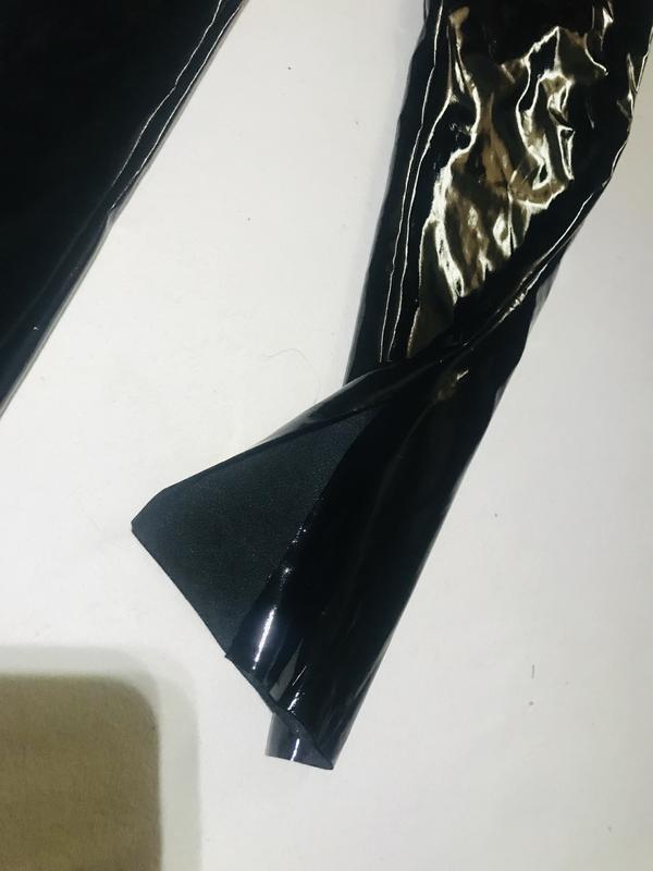 Трендовые лакированные лосины-штанины от Boohoo, вещь новая без бумажной бирки, размер S , внизу, сбоку разрезы , ткать идёт внахлест, не тянутся,