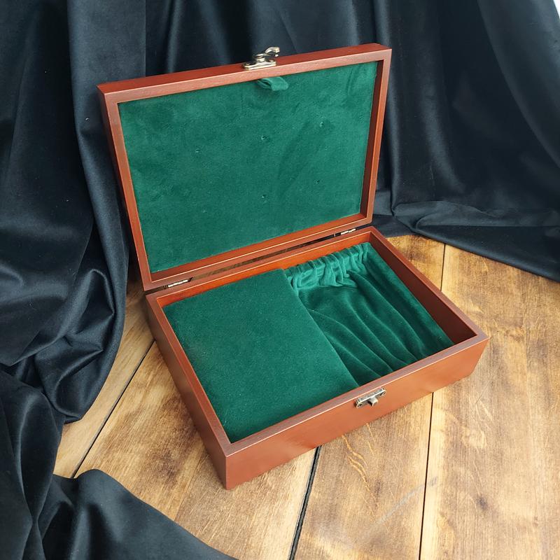 Шкатулка для хранения наград и медалей изготовлена из натурального дерева, цвета красное дерево, на замочке.