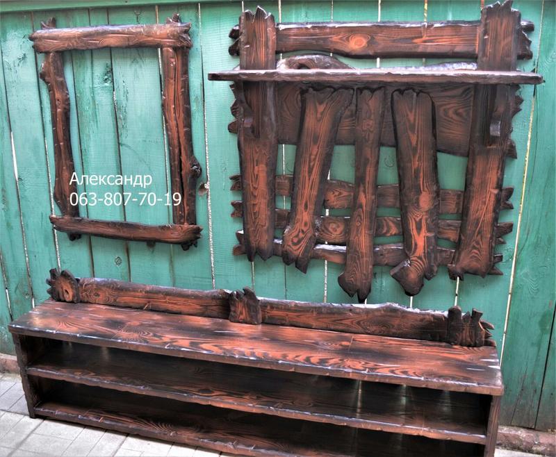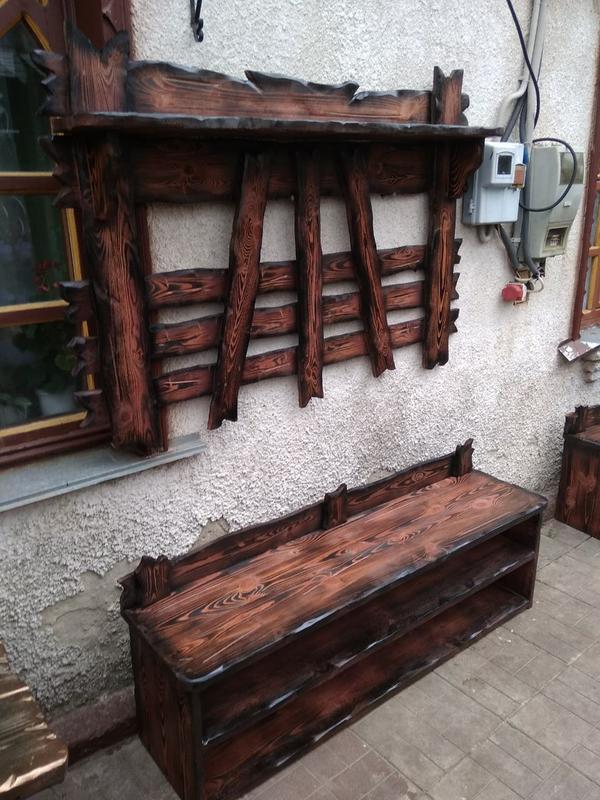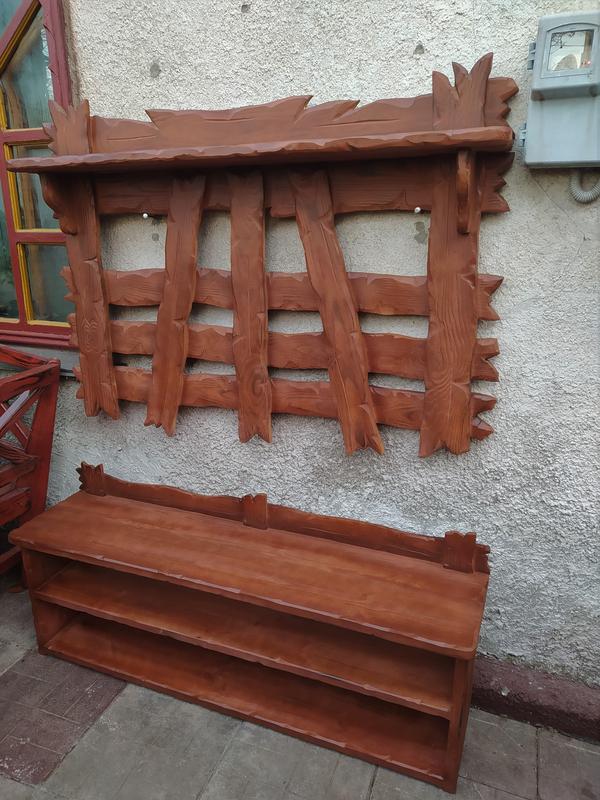 Доставка по всей УкраинеВешалка с полкой для обуви под старину. Искусственное старение, брашированая поверхность.