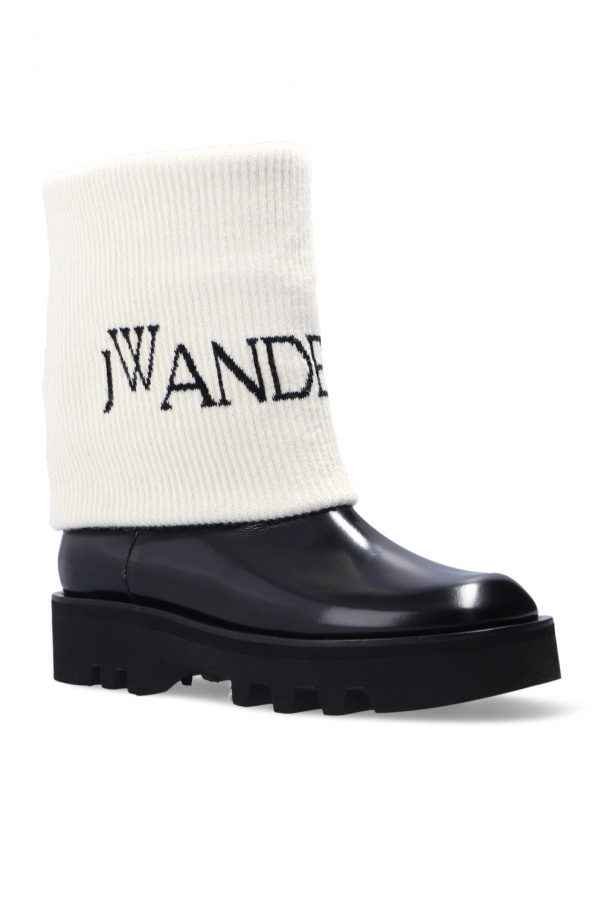 Black shoes from JW Anderson. Crafted from leather, this pair sits on a black rubber sole and is complete with a ribbed fold-over detail embroidered with the label’s logo in black.