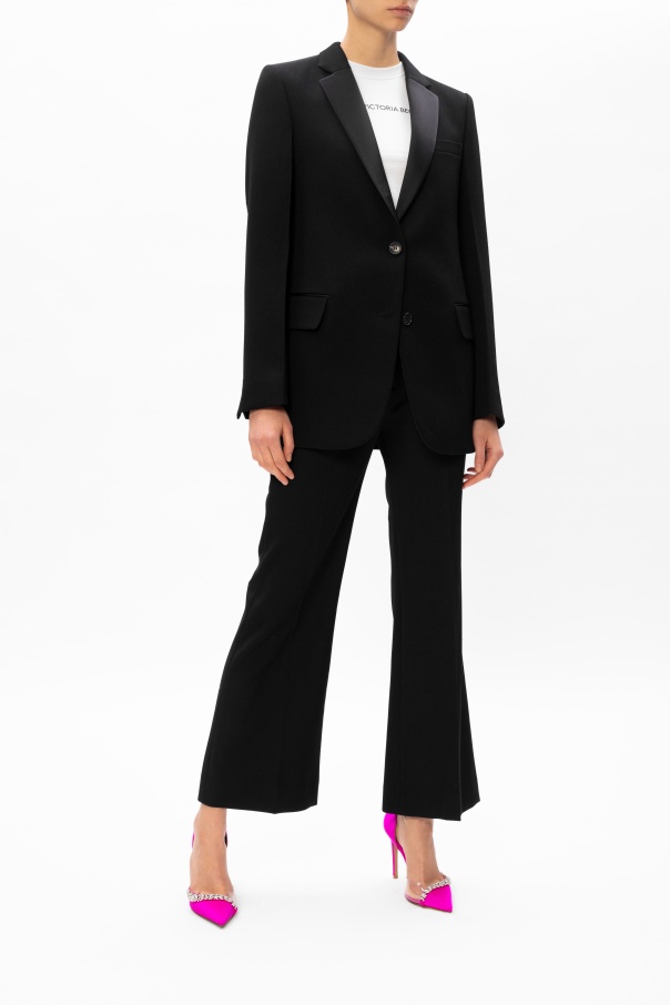 Pink ‘Ane’ stiletto pumps from Alexandre Vauthier. Crafted from a soft, satin-like fabric and enriched with silver-tone crystal embellishments, this pair sits on a brown leather sole.