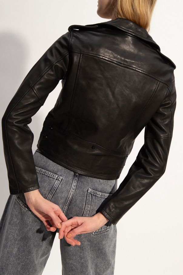 Black ‘Lindell’ jacket from AllSaints. Crafted from sheep leather, this style fastens via a zip and features four zipped pockets, black metal hardware and long sleeves with zipped vents on the cuffs.