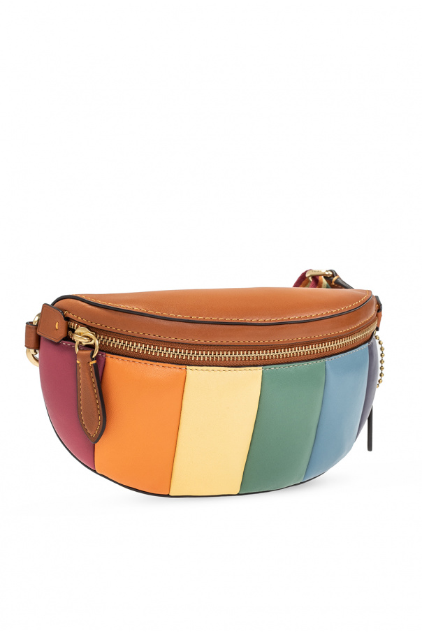Multicolored ‘Bethany’ belt bag from Coach. Made of leather, this design features a zip fastening, rainbow motif, detachable and adjustable shoulder strap, back zip pocket and gold-tone metal hardware.