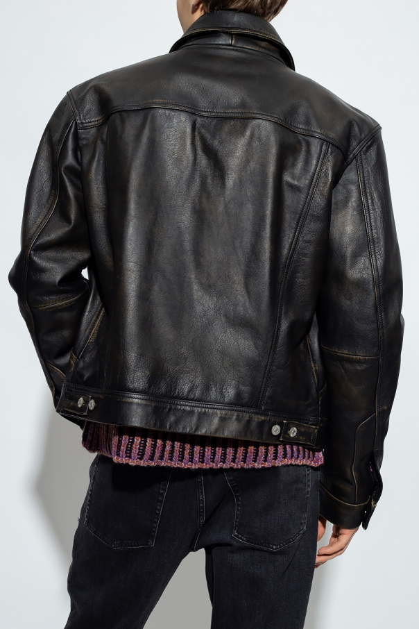 Black ‘L-Riley’ jacket with a vintage effect from Diesel. Crafted from cow leather, this design fastened with buttons and is complete with two slip pockets, two buttoned flap pockets and button cuffs.