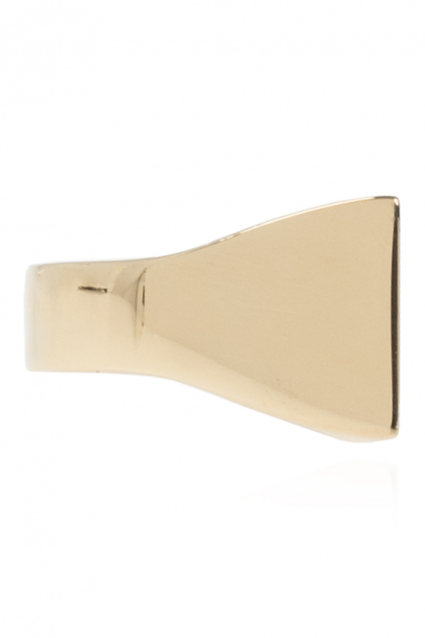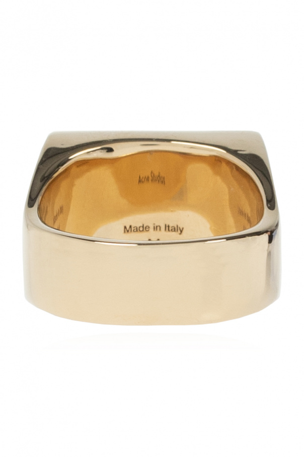 Gold-tone ring from Acne Studios. Made of brass, this item showcases a leather insert wielding the brand's signature logo.