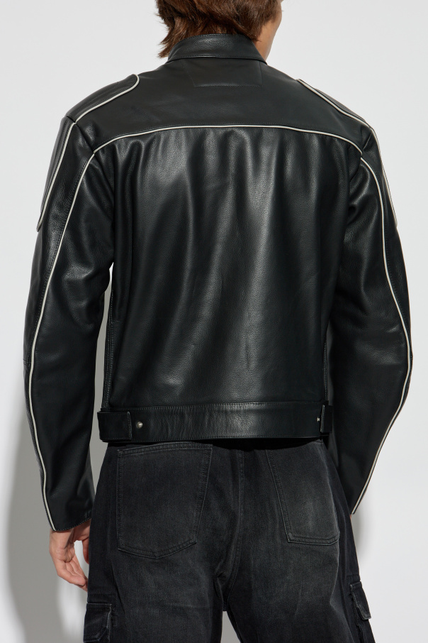 Introducing the Leather Jacket by MISBHV, an epitome of masculine elegance and contemporary style. This distinguished piece, crafted from premium leather, belongs to the exclusive collection of the renowned Polish streetwear label, led by designer Natalia Maczek. The jacket features a classic, tailored fit that exudes sophistication. It boasts a high collar secured with a snap button, a straight hem with adjustable straps, and sleek black color complemented by a light gray panel with the bold "misbhv" inscription on the upper front. White stitching accents on the sleeves and shoulders infuse a sporty essence into the design. Attention to detail is paramount in this garment, evident in the solid metal zipper closure, two vertical front pockets also with zippers, and the perforated leather inserts on the sleeves for enhanced ventilation. The high-quality zippers and meticulous finishing of leather elements underscore the meticulous craftsmanship that defines this jacket. Why Buy This Product? Premium Leather: Made from 100% high-quality leather, ensuring durability and luxury. Exclusive Design: Part of an exclusive collection, reflecting refined taste and sophistication. Functional and Stylish: Adjustable hem, high collar, and practical zippered pockets combine style with functionality. Unique Aesthetic: The blend of classic tailoring with modern elements like perforated leather inserts and bold branding. Sporty Elegance: White stitch detailing and a sleek silhouette offer a sporty yet elegant look.