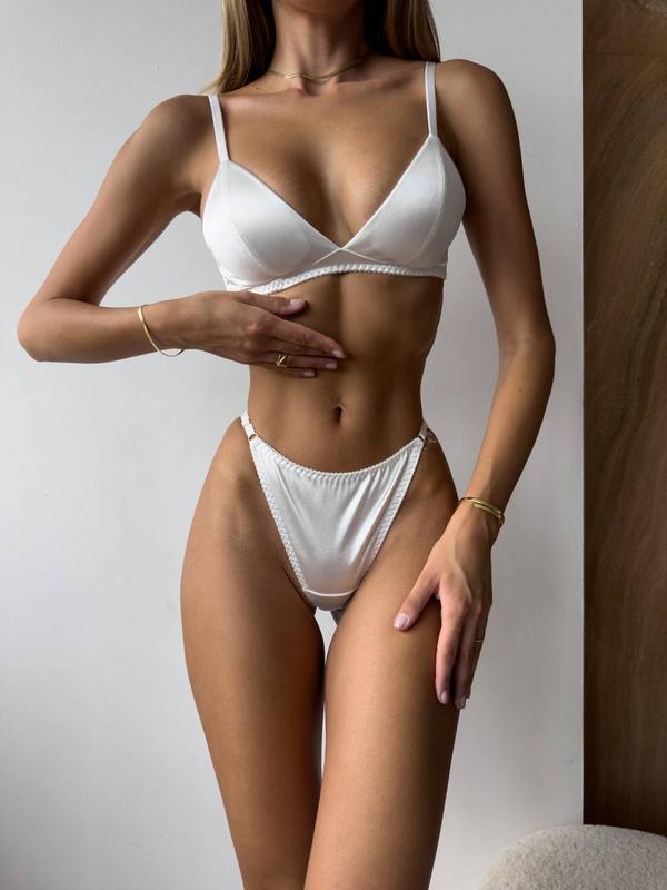 Материал:Полиэстер , Эластан ,Модель трусиков:Стринги ,Чашка:Без косточек , Мягкая ,Форма бюстгальтера:Треугольная ,Стиль:Романтический ,Посадка:Высокая ,Декор:Сеточка ,Вид комплекта:С бюстгальтером ,Принт:Без принта ,Описание