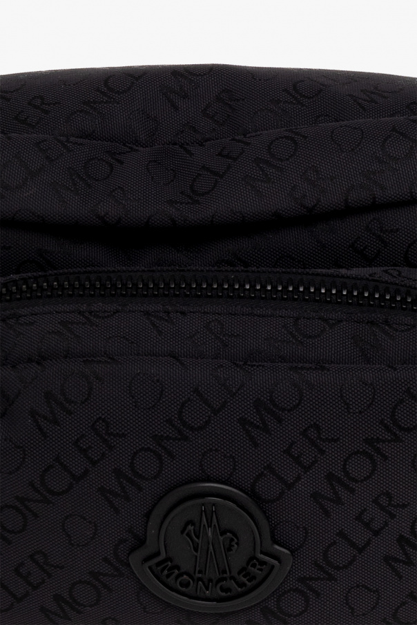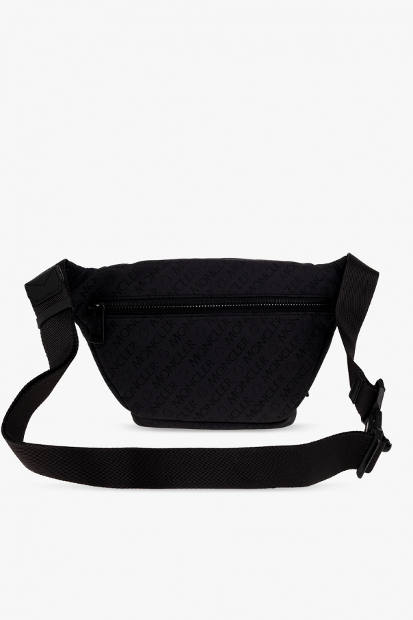 Black belt bag from Moncler. Made of fabric embroidered with a logo pattern, this design features a zip fastening, zipped back pocket, leather logo patch, adjustable shoulder strap and one internal compartment.