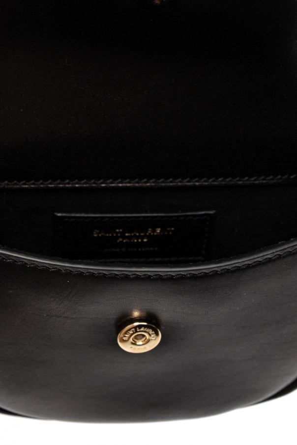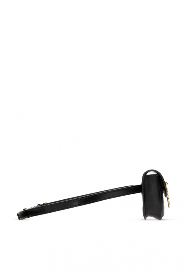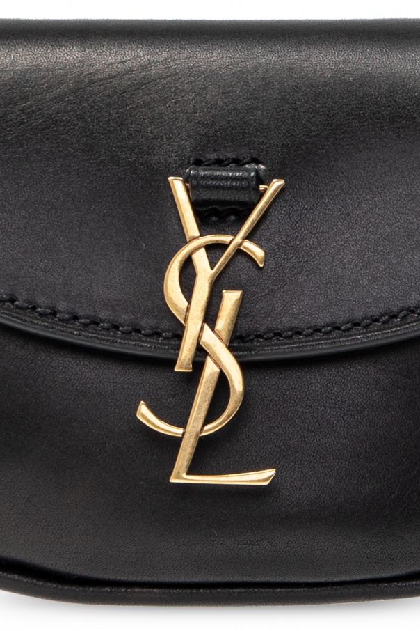 Black ‘Marsupio’ belt bag from Saint Laurent. Made of bovine leather, this accessory features a magnetic snap fastening, logo detail in antiqued gold-tone, adjustable belt and one internal compartment.