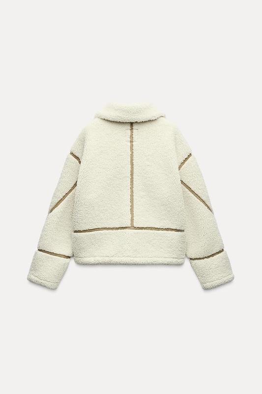 ДВОСТОРОННЯ КУРТКА ЗІ ШТУЧНОЮ ОВЧИНОЮКуртка з окантовкою, сорочковим коміром і довгими рукавами. Кишені з обшивкою спереду. Застібається на блискавку спереду. Хлястик на комірі та контрастна підкладка. Дуже гарно поєднується з взуттям UGG