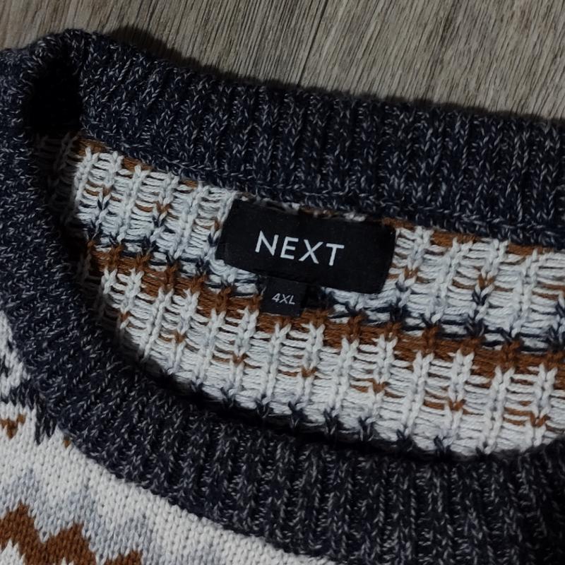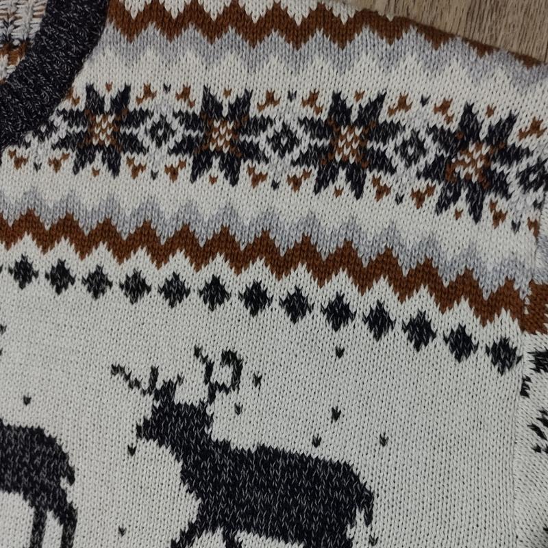 Мужской фирменный новогодний свитер "Next" в отличном состоянии, без дефектов. Материал плотности чуть выше средней, тянется; состав: 83% хлопок/ 17% акрил. Цвет: белый/ серый/ коричневый.
