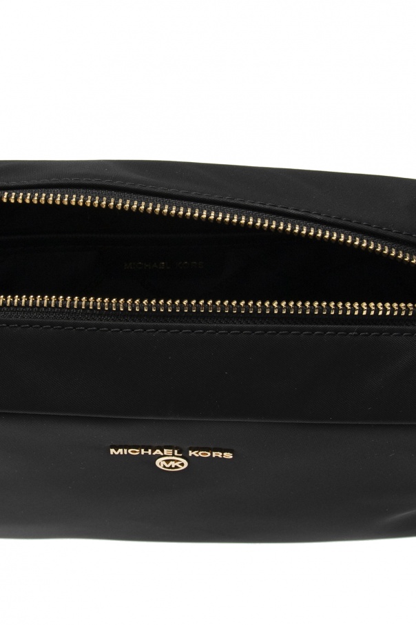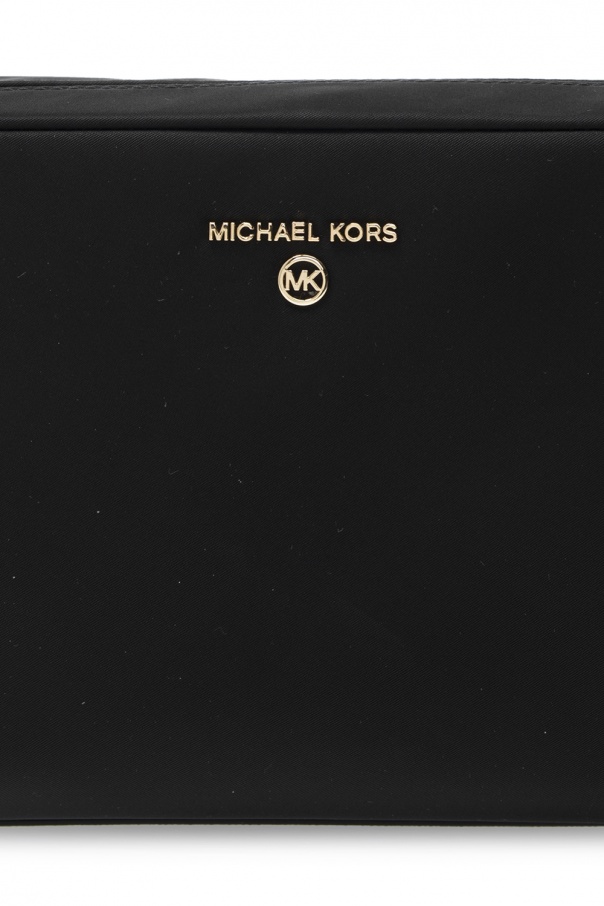 Black wash bag from Michael Michael Kors. Fastened with a zip, this item features gold-tone metal hardware, a logo appliqué and one internal compartment.