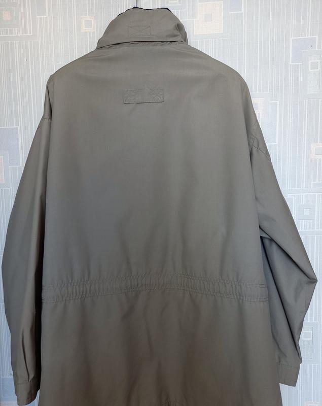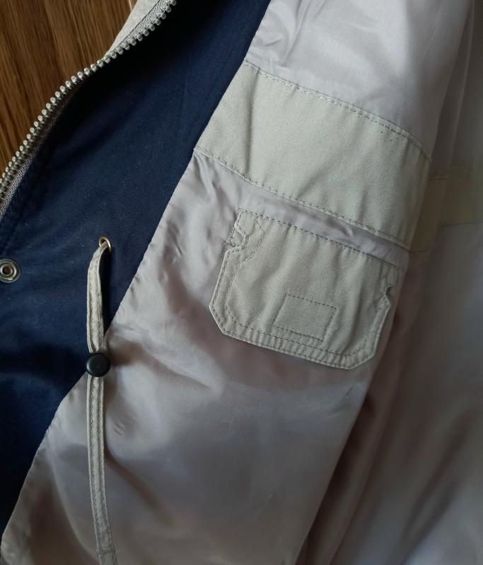 Мужская куртка- ветровка для крупных мужчин британского бренда BHS , на подкладке , воротник стойка ( можно отложить) внутри с капюшоном , снаружи - 2 кармана на молниях, 2 на кнопках и 2 боковых, внутри 1 на молнии, 1 на липучке для мобильного телефона , внутри- регулируемая утяжка по поясу.