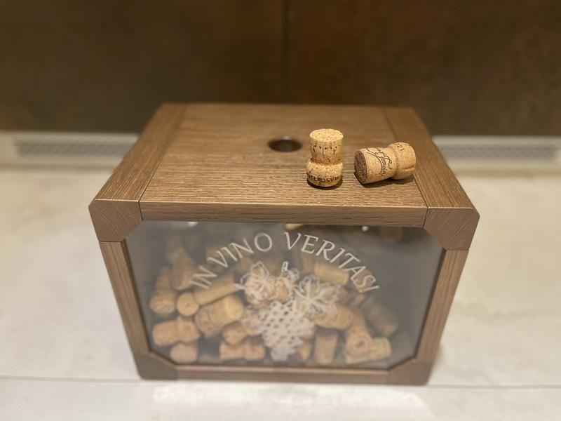 Виготовлена з прозорого оргскла, дубової дошки, вскрита тоном та лаком. Розміри: 315*220*235мм. Також можемо робити під замовлення дані скарбнички, з Вашим логотипом.