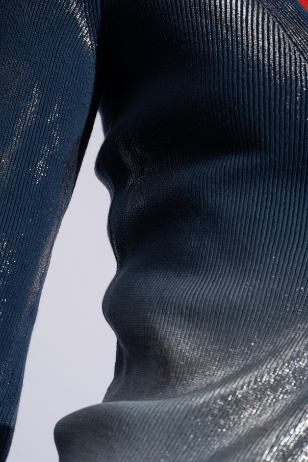 Navy ‘M-ISOLDE’ cardigan from Diesel. Fastened with ties, this design features glitter, a logo detail, long sleeves and a worn effect.