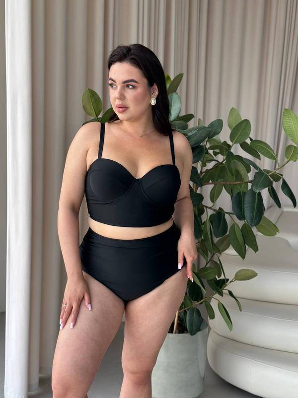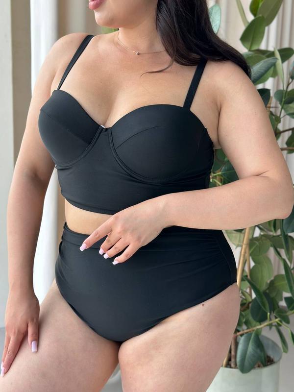 Стильный базовый купальник двойной: тонкие бретели регулируются, бюст удлинен и высокие закрытые бикини!