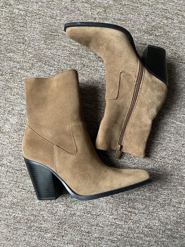 Продам абсолютно нові козаки 37 розміру бренду Stradivarius. Підбори 9см. Якісна натуральна замша. Жодного разу не взувала. Колодка зручна. Підійдуть як доя худенької стопи так і для більш широкої.Колір універсальний та дуже практичний.