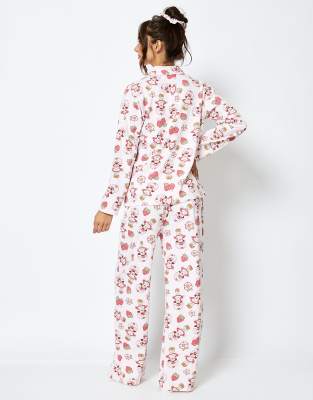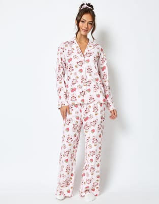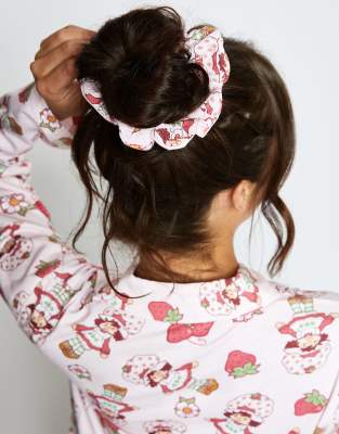 - Set contains 1 x long sleeve pyjama top with buttons, 1 x pyjama trousers, and 1 matching hair scrunchie