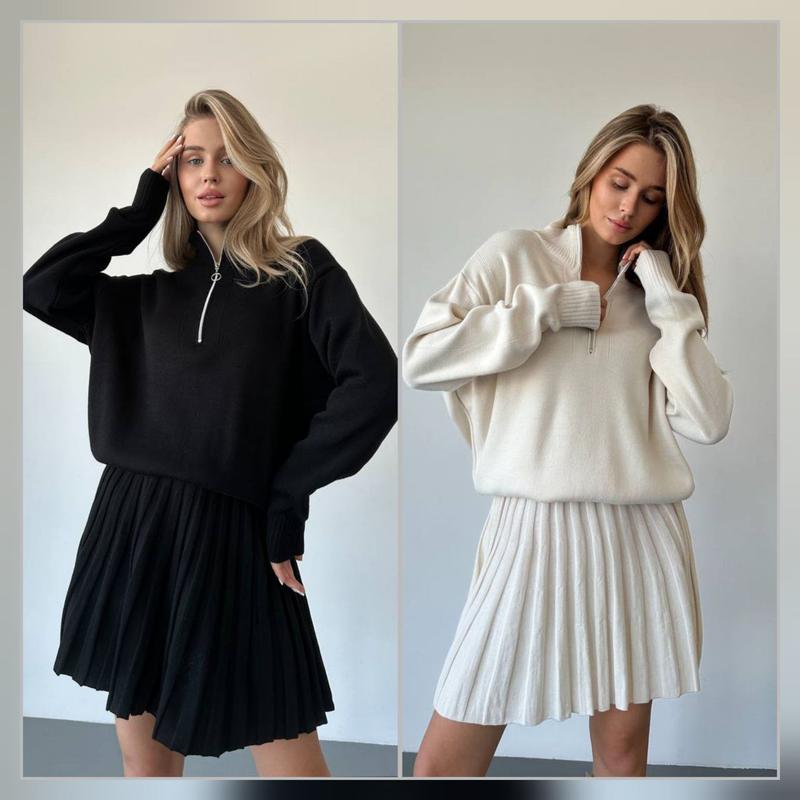 Трикотажный костюм представлен с плиссированной юбкой и лонгсливом. Такой комплект гармонично вписывается в образ как основа, так и в качестве отдельных элементов.• Размер универсальный