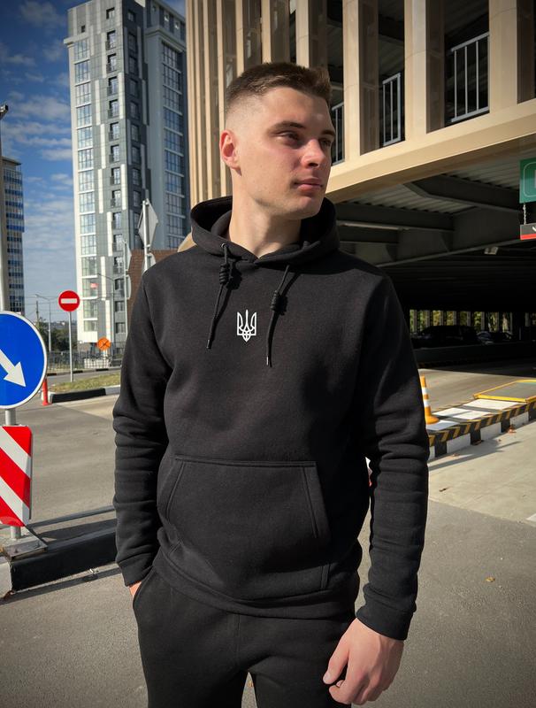 телефону.✅Зимний партиотический худи с Гербом черного цвета с начесом / толстовка черная