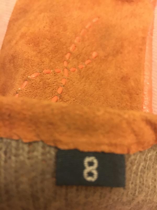 Сверху замша, низ кожа, мягкая текстура , цвет рыжий с оранжевым