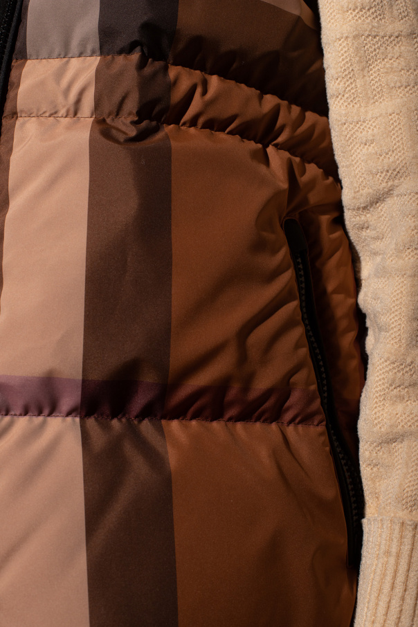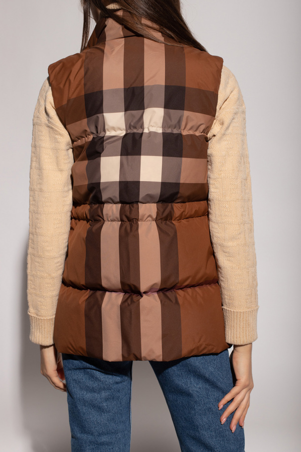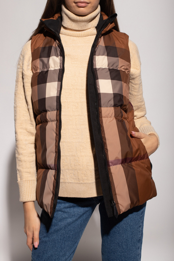 Brown, beige and cream vest from Burberry. Filled with goose down and embellished with the brand's iconic check pattern, this style features a two-way zip closure and two zipped pockets on the front.