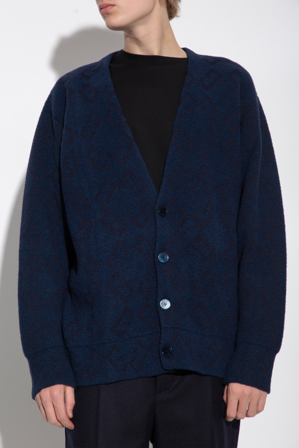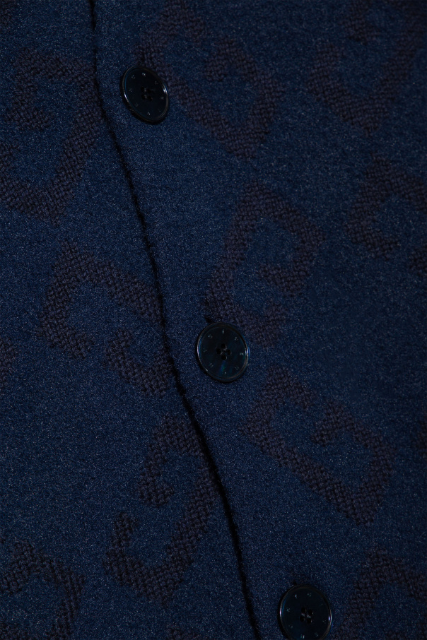 Discover the epitome of understated luxury with the Givenchy Logo Cardigan, a distinguished piece from our exclusive men's collection. This cardigan seamlessly blends sophistication and modernity, epitomizing the renowned craftsmanship of Givenchy. Crafted from a sublime blend of wool and polyamide, this cardigan features a classic, straight cut with long sleeves and a deep V-neckline. The subtle geometric pattern, rendered in a darker hue than the base, creates a sophisticated tonal effect, adding depth and texture to the piece. The garment is meticulously finished, with navy buttons that harmonize perfectly with the deep navy color of the cardigan. The cardigan's loose fit, as seen on our model, ensures comfort while maintaining an air of refined elegance. The absence of a visible logo speaks to Givenchy's commitment to quiet luxury, making this piece a versatile addition to any discerning gentleman's wardrobe. Why choose this product? Expertly crafted from premium materials: 60% Wool, 40% Polyamide Elegant geometric pattern for a sophisticated look Classic design with a modern twist, featuring navy buttons Luxuriously finished edges for a refined touch Designed by Givenchy, a hallmark of aristocratic elegance and fresh modernity