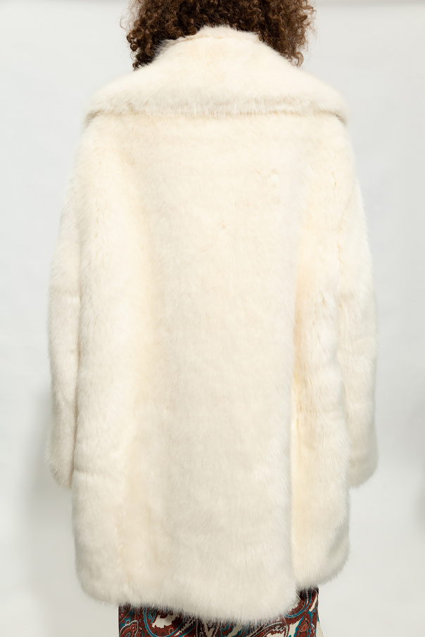 Cream coat from Dsquared2. Crafted from faux fur, this long sleeve design features hook fastenings, collar and two front pockets.