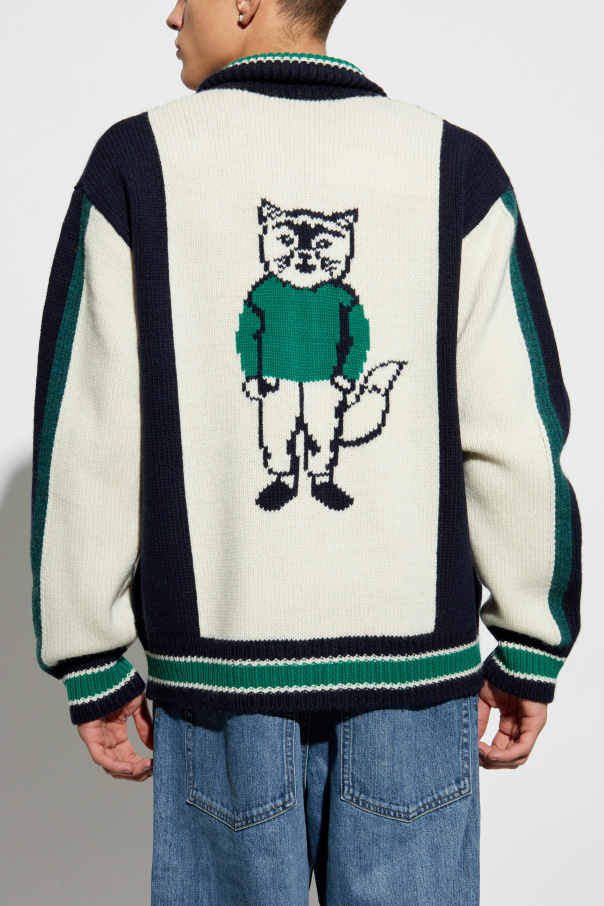 Indulge in the exquisite allure of the Woolen Cardigan from the illustrious Maison Kitsuné. This elegant piece is a testament to the brand's mastery in blending contemporary design with timeless elements. Adorned in a predominantly white palette, accentuated by dark blue and green vertical stripes, this cardigan exudes a subtle yet striking visual appeal. The sleeves, hem, and collar are intricately detailed with matching stripes, enhancing its sophisticated aesthetic. Crafted from soft, high-quality wool, the cardigan promises both warmth and comfort, making it an ideal choice for cooler days. The full-length zipper closure adds a practical touch, while the brand's signature logo patch on the chest and the captivating fox graphic on the back embody Maison Kitsuné's unique style. With a relaxed, casual fit, this cardigan perfectly harmonizes sporty flair with elegant sophistication, making it a versatile addition to any wardrobe. Why Choose This Product? Exclusive design by Maison Kitsuné, renowned for its fusion of music and fashion. Crafted from luxurious, soft wool for ultimate comfort. Features striking dark blue and green stripes for a unique look. Includes two convenient slip pockets for practicality. Iconic fox motif, representing the brand's distinctive character.