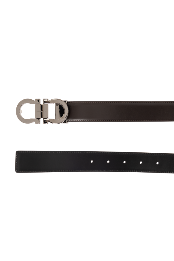 Black and brown, reversible belt from FERRAGAMO. Made of calf leather, this item fastens with a logo buckle in dark silver-tone.